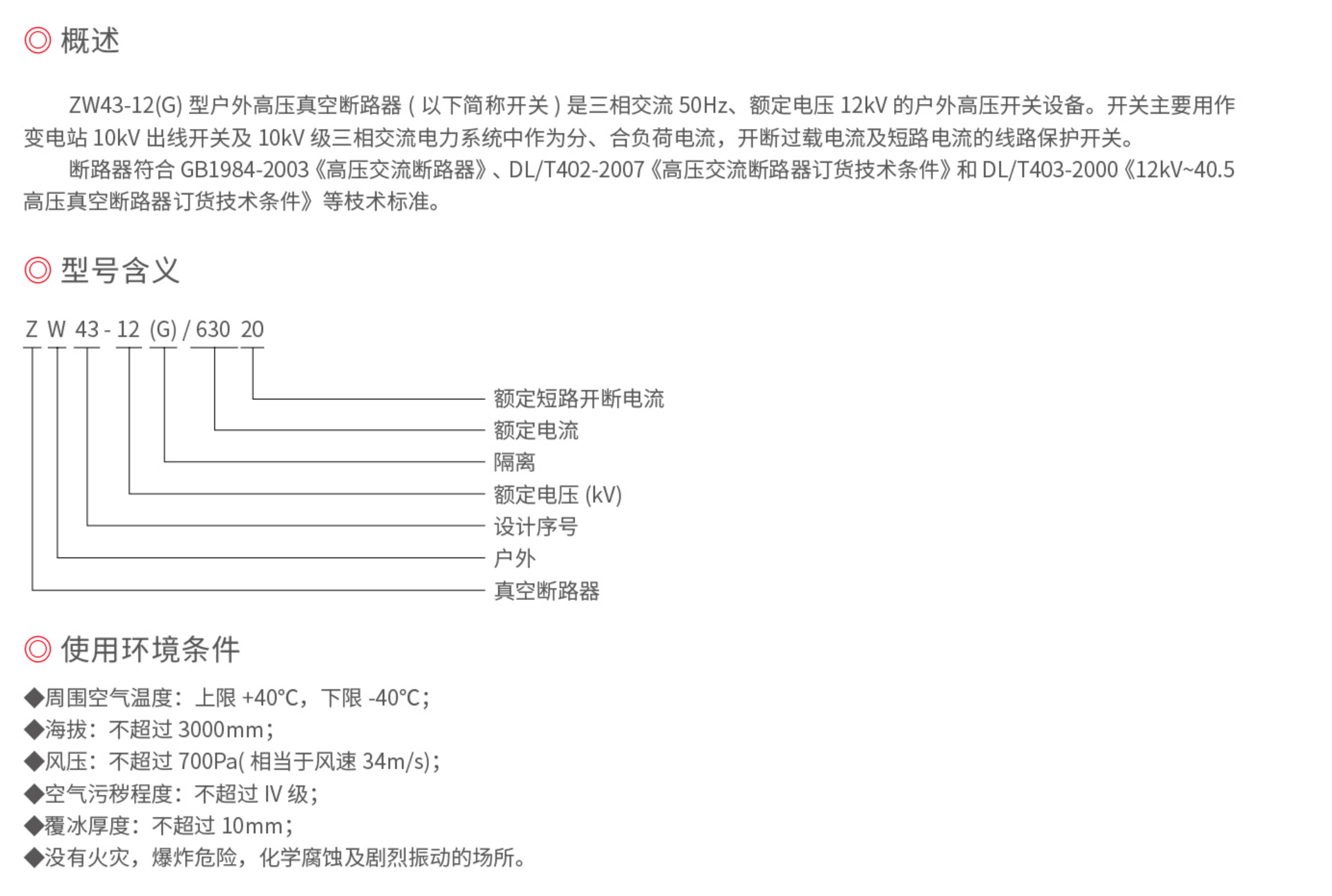 ZW43-12 戶外高壓真空斷路器