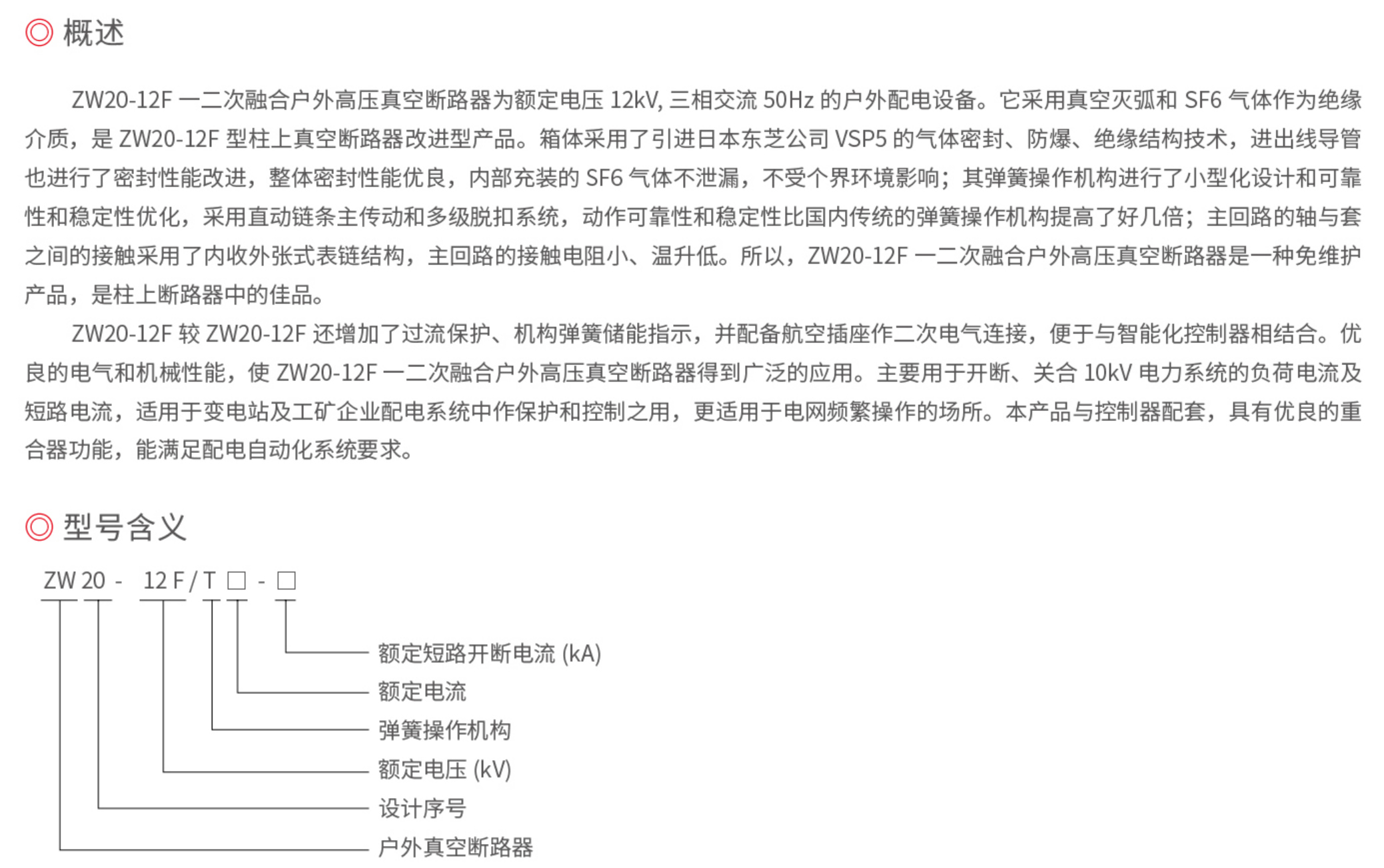 ZW20-12F 一二次融合戶外高壓真空斷路器