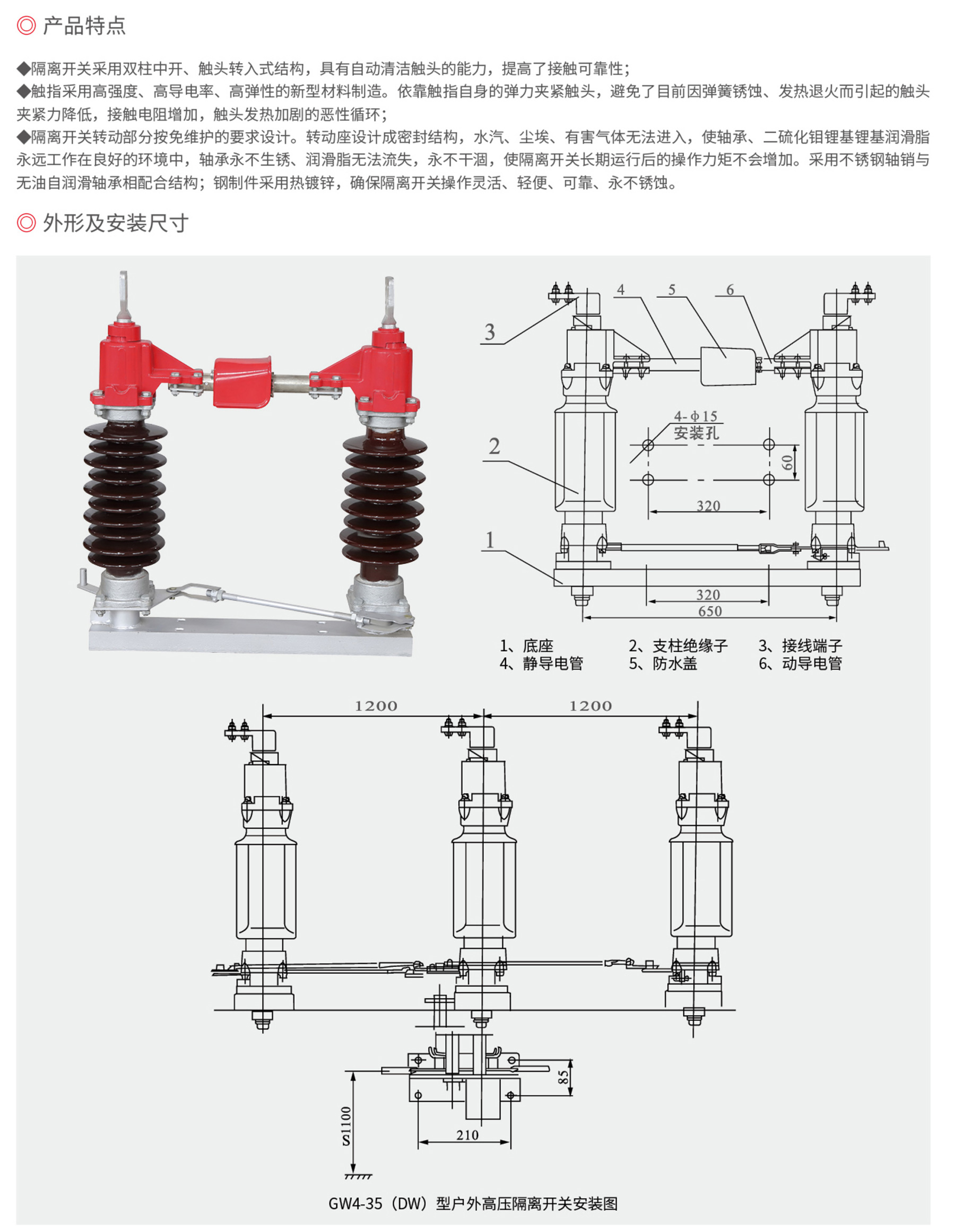 GW4 戶外雙柱水平開啟式高壓隔離開關(guān)